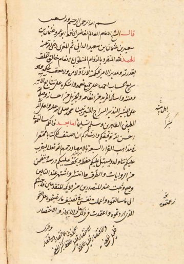 [2] A work on the seven qirā’āt by Uthmān bin Sa’īd bin Uthmān al-Umawi (371 AH – 444 AH), more commonly known as Abu Amr al-Dāni from Dénia, a historical coastal city of Alicante province in Spain. After studying locally, he began his educational travels in 397 AH during which he ventured through Qayrawan and Egypt, and performed Hajj. He was a follower of the Māliki madhhab, and was counted amongst the huffāž of hadith, along with being renowned as an Imam of qirā’ah, ulūm al-Quran, and tafsīr. Ibn Ubaydullah al-Hijri quotes Abu Amr as having said, “I did not see anything except that I wrote it, and I did not write anything except that I memorized it, and whatever I memorized I did not forget.” He authored around 120 works which include al-Ishārah in the science of qirā’ah, al-Tajdīd fi al-Itqān wa al-Tajwīd, al-Ihtidā’ fi al-Waqf wa al-Ibtidā’, al-Bayān fi `Addi Āyi al-Quran, Tabaqāt al-Qurrā, and more. (Siyar A’lām al-Nubalā by al-Dhahabi and al-A’lām by Khayr al-Dīn al-Zirkalī)